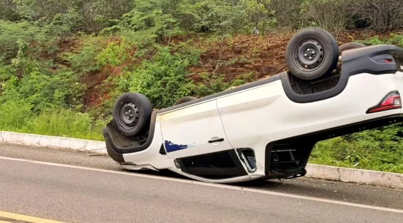 Motorista capota carro ao tentar evitar colisão com outro veículo na BR-407, em Jaicós