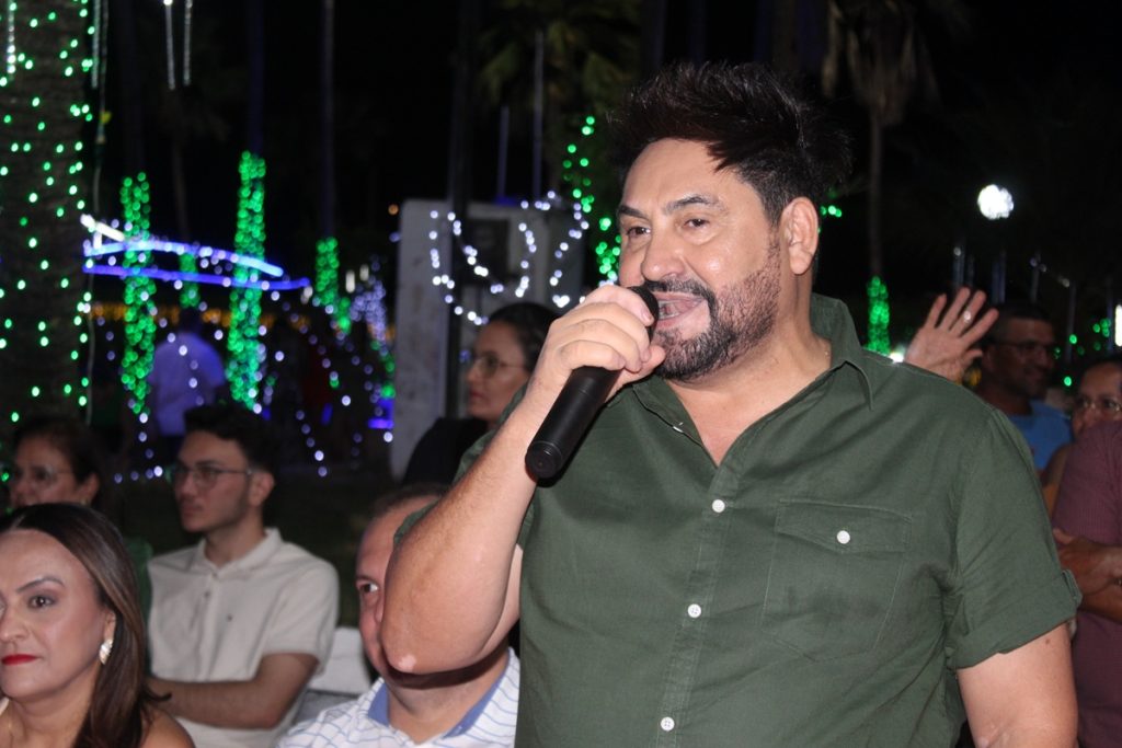 Na sequência, o prefeito Djalma Policarpo conduziu o acendimento oficial das luzes de Natal, um gesto que cobriu a Praça Central de um brilho especial e marcou o início das comemorações.