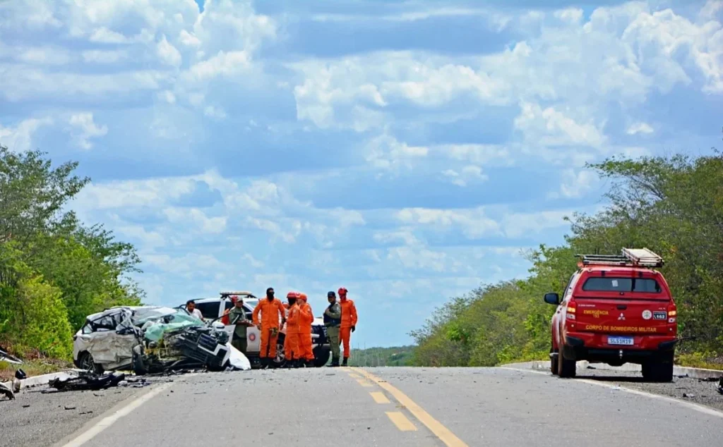 Colisão entre veículos deixa três pessoas mortas, carro incendiado e feridos na BR-407 em Jaicós