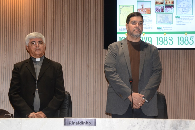 O presidente da casa, vereador Rinaldinho destacou a participação social que a Diocese de Picos promove até os dias de hoje, enfatizando a importância do reconhecimento da Câmara Municipal de Picos que nesta data homenageia a Diocese de Picos.