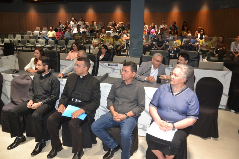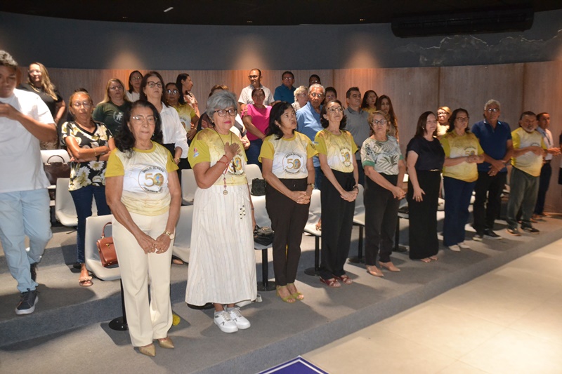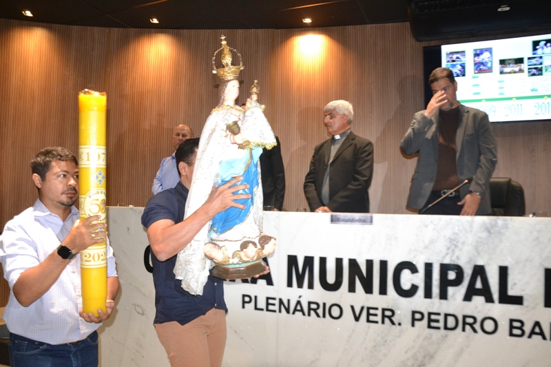 A cerimônia contou ainda com cânticos tradicionais, como o Hino da Padroeira e os hinos comemorativos dos 30 e 40 anos da Diocese, reforçando a dimensão espiritual do evento, além disso, diversas autoridades cívicas e religiosas subiram ao palanque do plenário para enaltecer ainda mais o trabalho realizado pela Diocese ao longo dos seus 50 anos de história e fé.
