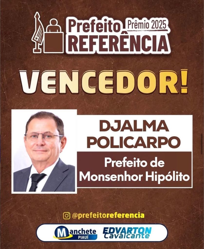 O prefeito de Monsenhor Hipólito, Djalma Policarpo foi homenageado na noite desta terça-feira (11) com o título de “Prefeito Referência 2025”.