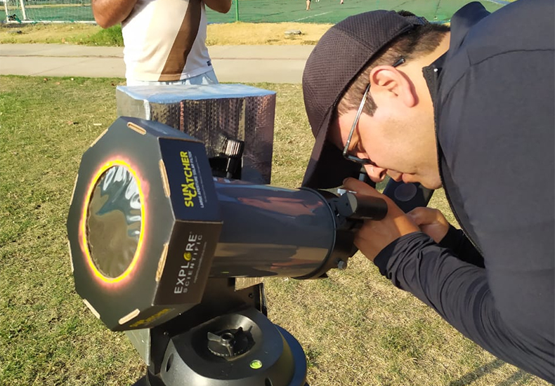 “Nunca as pessoas devem olhar diretamente para o sol, mesmo com óculos escuros ou materiais caseiros, pois pode danificar a retina irreversivelmente. Para observar um eclipse com segurança, deve ser usados instrumentos adaptados com filtros adequados, como o filtro de soldador número 14 ou maior ou óculos de distribuidoras autorizadas com ISO 12312-2 e a observação deve ser feita por no máximo 15 segundos e com intervalo de descanso de 3 minutos. Nunca use instrumentos ópticos como binóculos ou telescópios sem orientação de profissionais da área experientes”, destacou.
