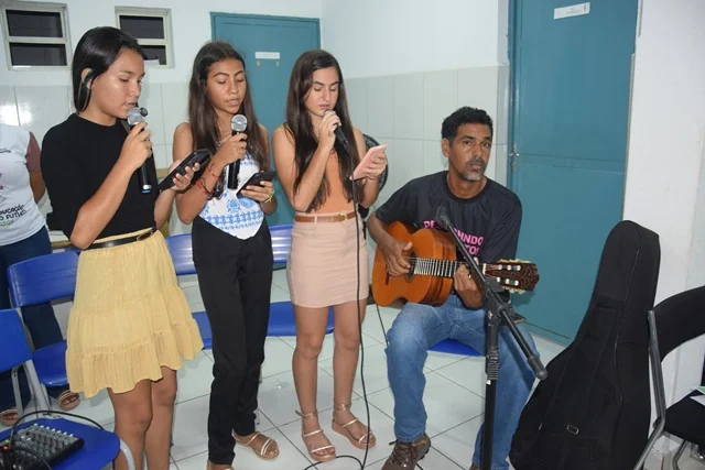 Na sequência, crianças do Projeto Descobrindo Talentos, acompanhadas pelo professor de música Marcos Rogério, conduziram a entoação dos Hinos Oficiais, abrilhantando o momento com sensibilidade e valorização cultural.