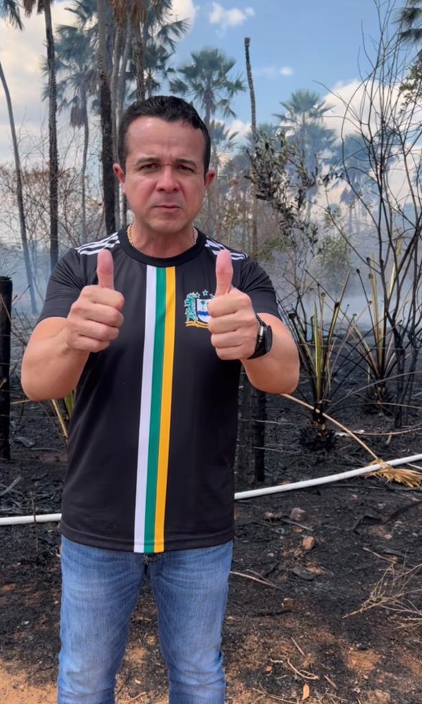 Em um vídeo, o prefeito de Sussuapara, Naerton Moura, faz um pedido à população para ter cuidado com uso de fogo.