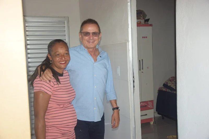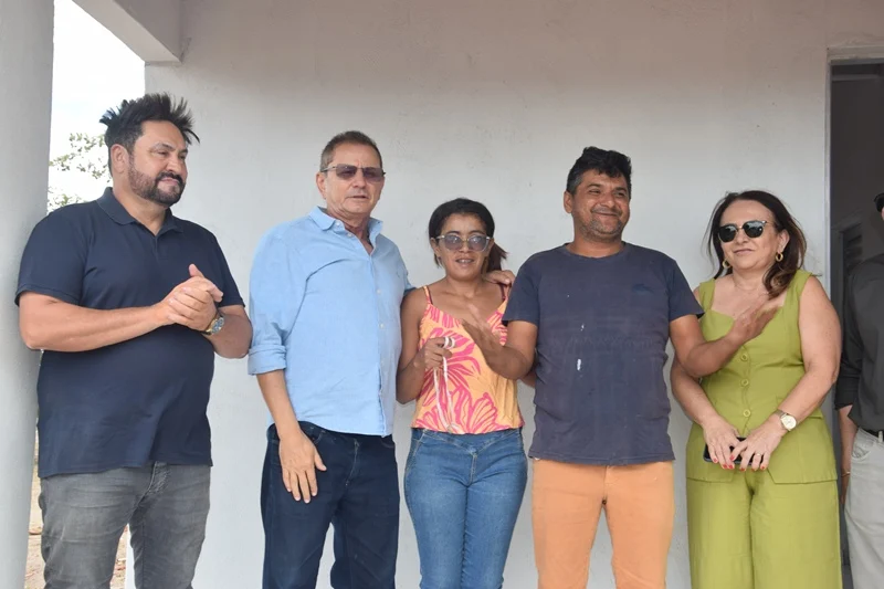 Finalizando a agenda de entregas, o casal Maria Tais e Alzemiro Silva, da localidade Serra Azul, foi contemplado com a nova residência.