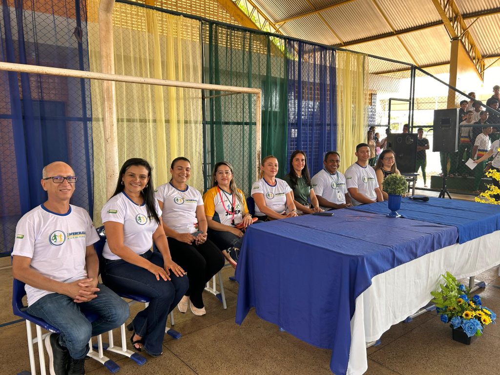 A mesa de honra reuniu diretores das escolas, a secretária municipal de Esportes Layana Rufino, a equipe da 9ª GRE e o representante dos grêmios estudantis, Marcos Silva.