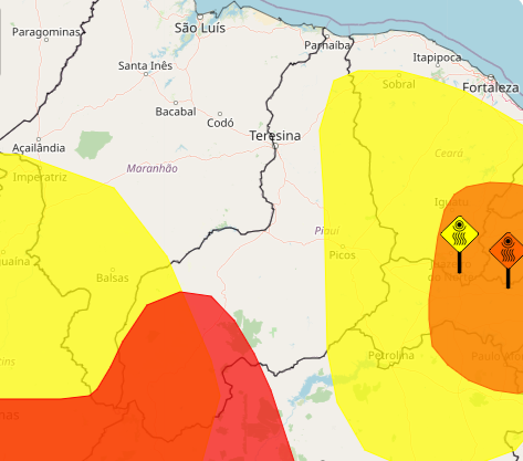 Para a região sudeste do Piauí, o INMET também emitiu um alerta para onda de calor. Segundo o comunicado, as temperaturas podem ficar até 5° acima do habitual pelas próximas semanas.