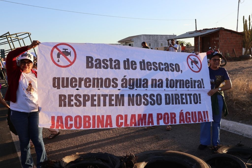 Moradores da cidade de Jacobina do Piauí, a 445 km de Teresina, realizaram, na tarde de quinta-feira (13), uma manifestação na BR-407 para denunciar a falta de água no município e cobrar melhorias da concessionária Águas do Piauí, responsável pelos serviços de abastecimento de água, coleta e tratamento de esgoto no estado.
