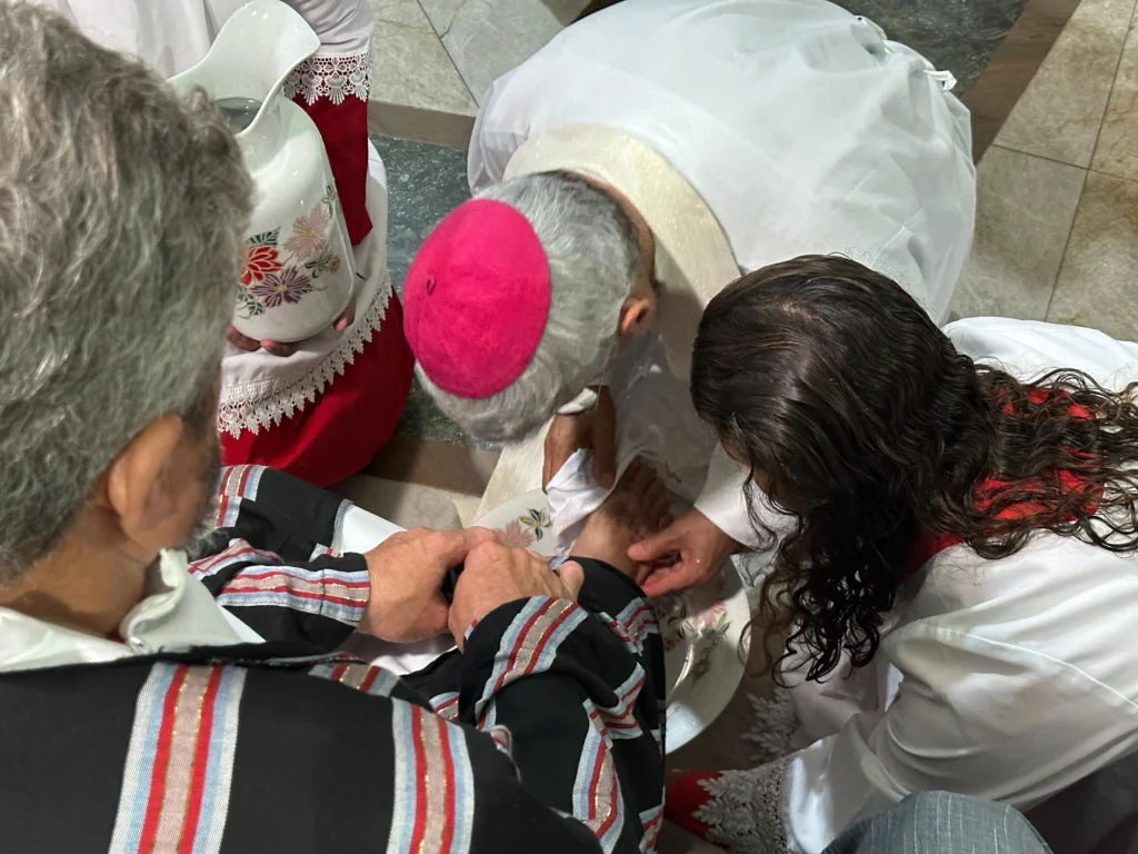 Durante a cerimônia, Dom Plínio lavou os pés de 12 membros da comunidade, representando os apóstolos. O gesto simboliza humildade, serviço e amor ao próximo princípios centrais da tradição cristã.