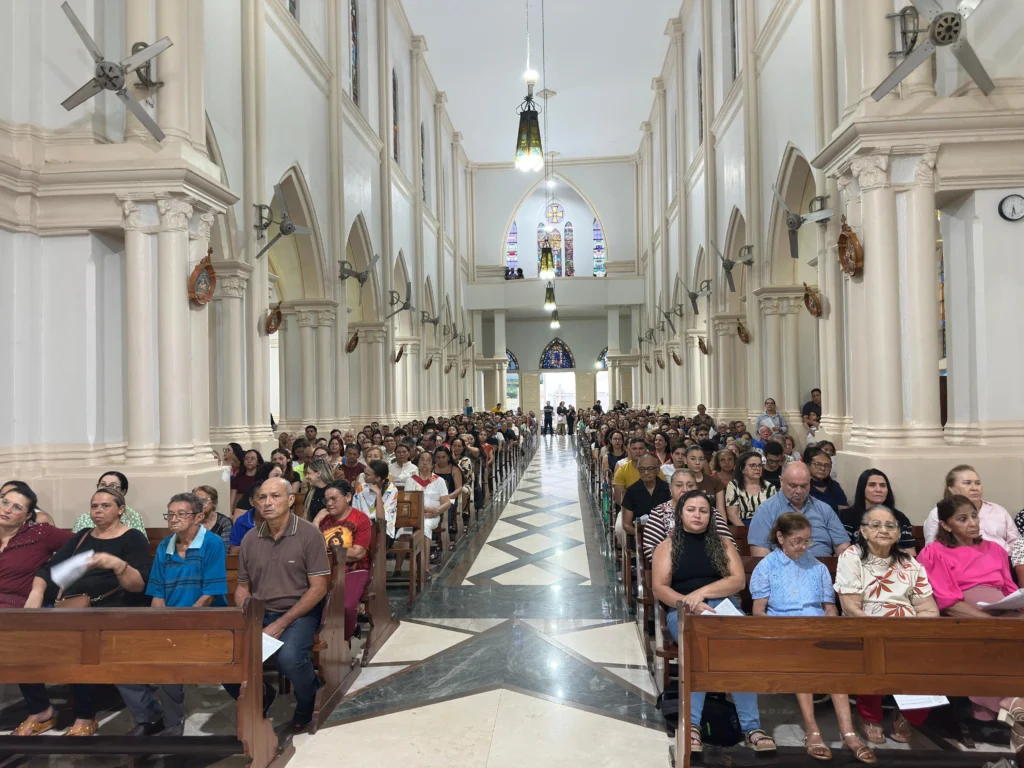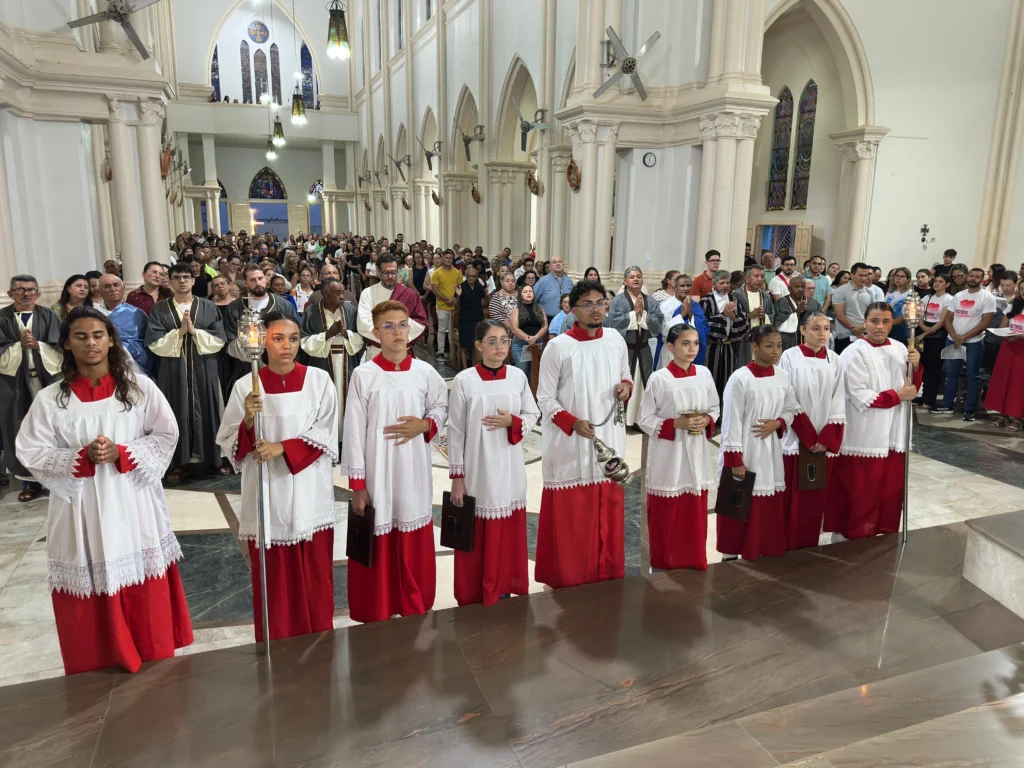 Mesmo com chuva, os fiéis compareceram em grande número e lotaram a catedral, demonstrando fé e devoção. A celebração teve início às 17h e contou com o rito do Lava-Pés, que relembra o gesto de Jesus Cristo durante a Última Ceia.