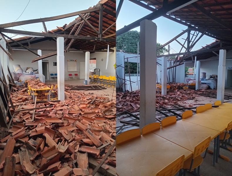 Parte do telhado da Creche Nossa Senhora do Perpétuo Socorro, localizada no município de Dom Expedito Lopes, desabou na tarde dessa segunda-feira (27). O acidente ocorreu por volta das 16h, mas, como era feriado, não havia ninguém no local no momento do desabamento e ninguém ficou ferido.