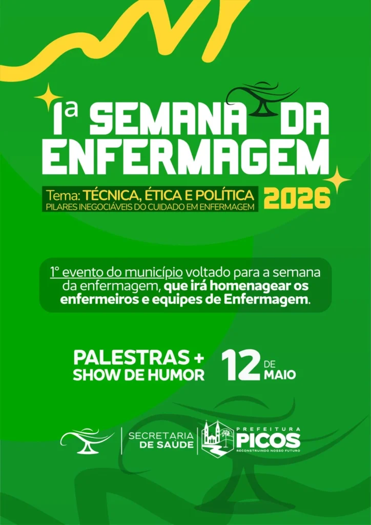 A Prefeitura de Picos, por meio da Secretaria Municipal de Saúde, promove no próximo dia 12 de maio a 1ª Semana da Enfermagem do município. O evento será realizado em alusão ao Dia Internacional da Enfermagem e tem como objetivo valorizar e reconhecer o trabalho essencial desempenhado pelos profissionais da área.