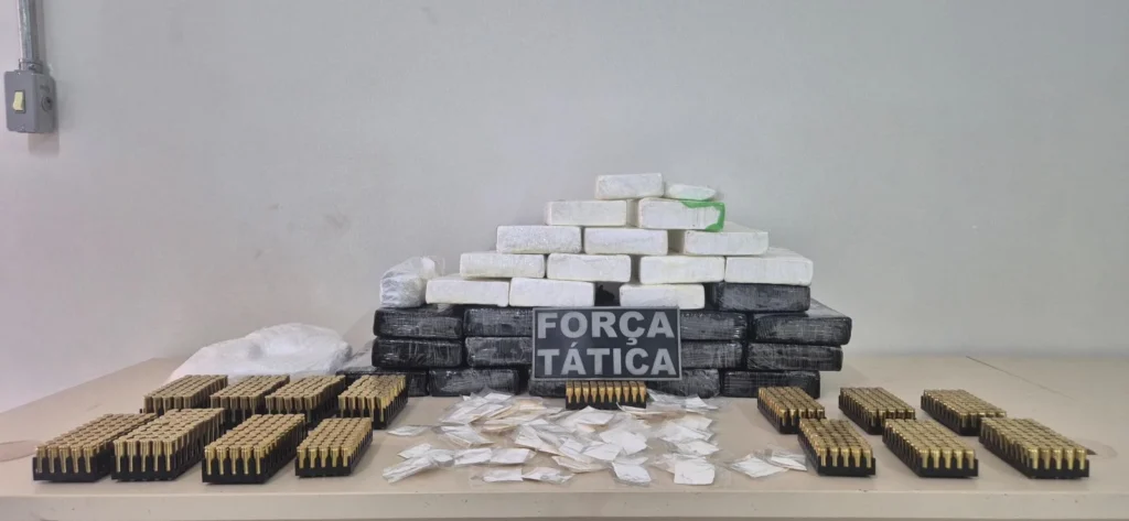 A Polícia Militar do Piauí, através da 2ª Companhia do 14º Batalhão, realizou uma apreensão de grandes proporções nesta terça-feira, 3 de fevereiro, na zona urbana de Simplício Mendes. Durante uma fiscalização de rotina em um ônibus de passageiros na BR-020, os policiais localizaram duas malas e uma mochila contendo um verdadeiro arsenal e uma carga de entorpecentes.