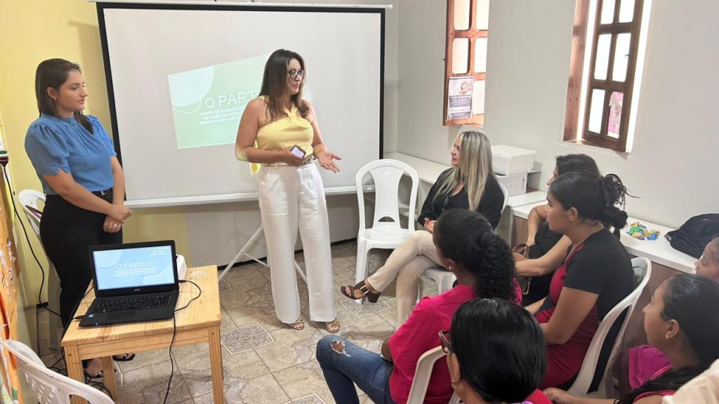 A atividade foi conduzida pela fisioterapeuta Luana Anjos, que abordou aspectos essenciais relacionados ao período gestacional, ao parto e aos cuidados no pós-parto, esclarecendo dúvidas e proporcionando um espaço de troca de experiências entre as participantes.