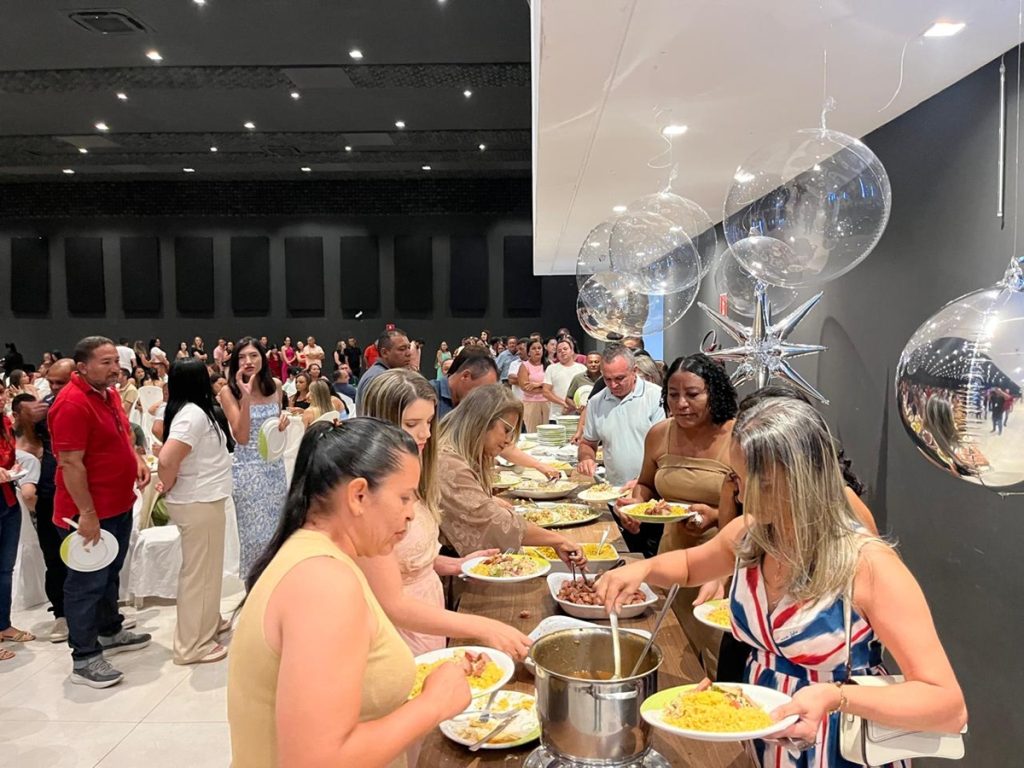 A primeira-dama e secretária municipal de Educação, Elayne Sá, também expressou seu agradecimento, enfatizando o ambiente familiar e de união que caracterizou a noite. “É uma alegria imensa compartilhar este momento com nossos servidores e suas famílias, que diariamente se dedicam aos trabalhos da gestão municipal, esta celebração é de todos nós. Parabéns a todos e que Deus nos abençoe para mas um ano que se aproxima”, disse.