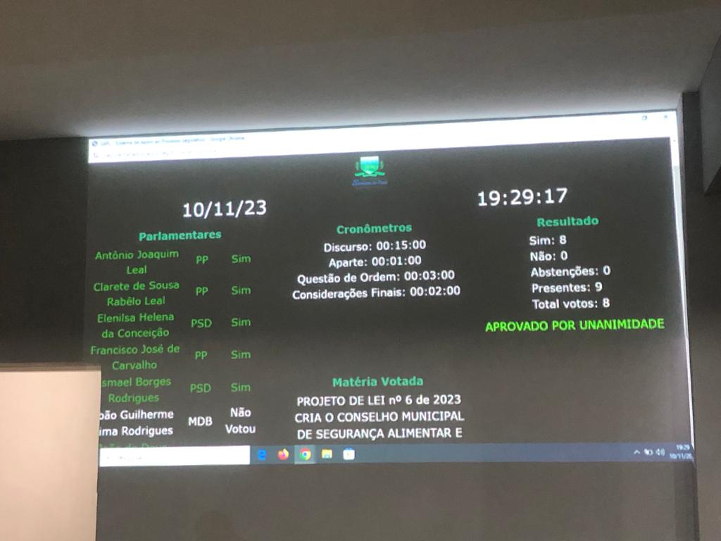 A Câmara Municipal de Santana do Piauí, realizou nesta sexta-feira (10), sessão ordinária presidida pelo vereador e presidente da casa, João Guilherme, onde tinha como pauta o Projeto de Lei do Poder Executivo Municipal que Cria o Conselho Municipal de Segurança Alimentar e Nutricional – Comsea do Município de Santana do Piauí e dá outras providências.