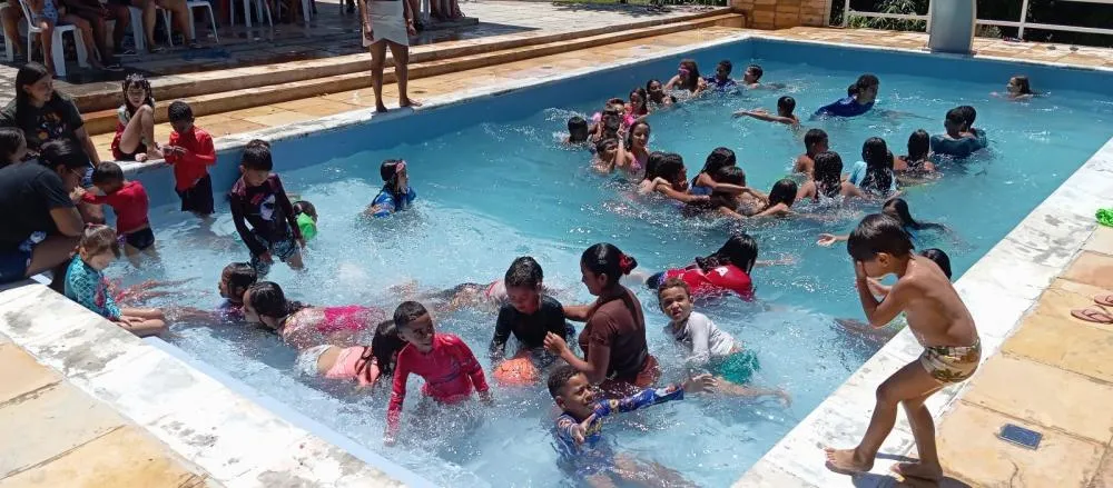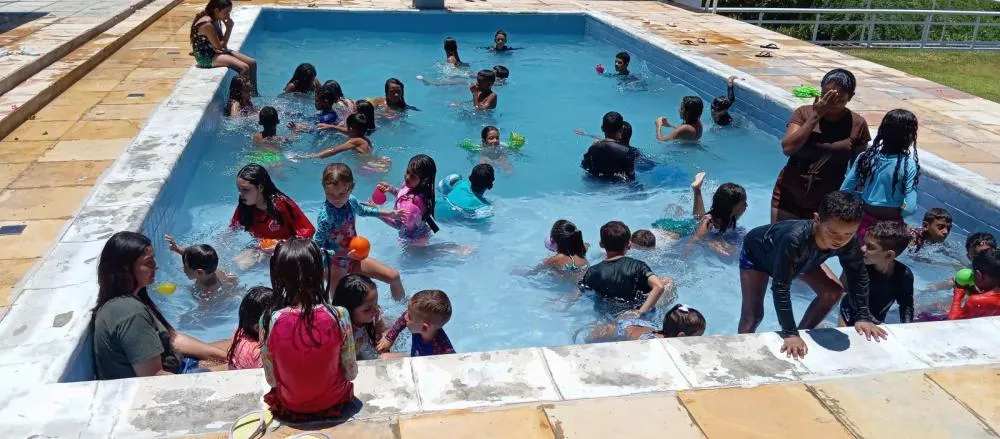 O dia de lazer foi dividido em banho de piscina, futebol de campo, atividades recreativas e distribuição de lembrancinhas.